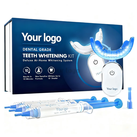 ערכת הלבנת שיניים מקצועית עם אור כחול, לוגו מותאם אישית, ג'ל PAP, הלבנה זוהרת, סיטונאי, יצוא